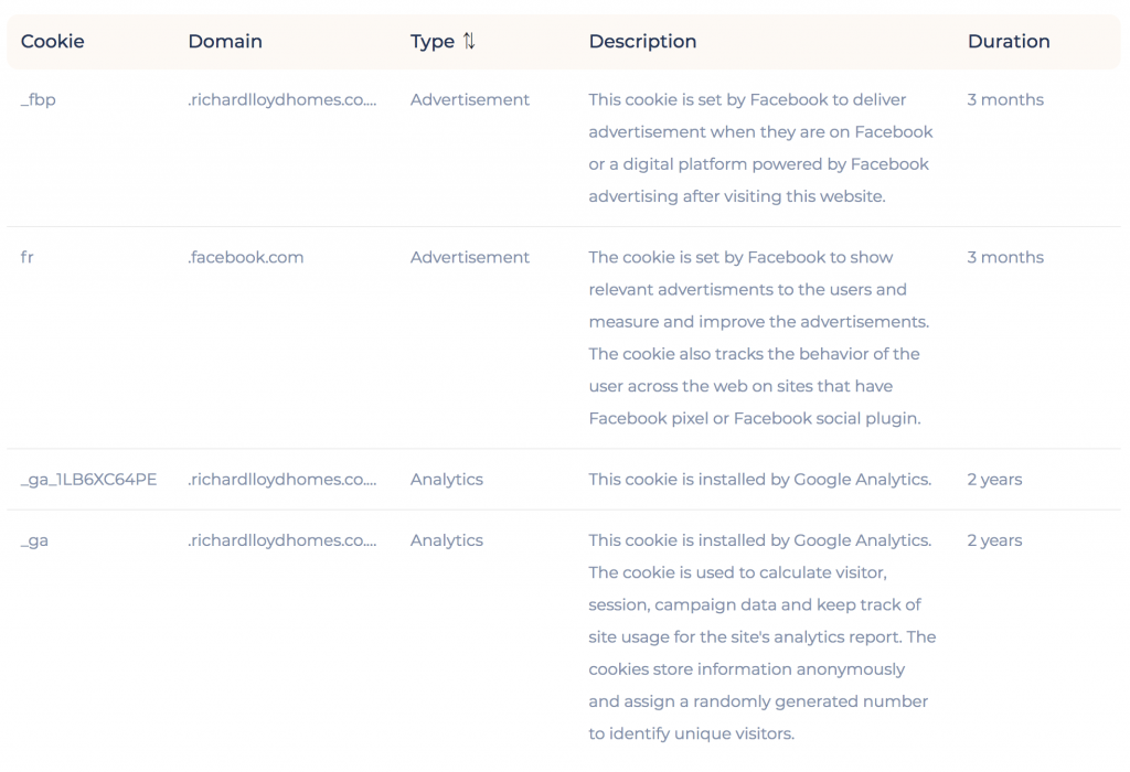 Generally, Richard Lloyd Homes use two types of cookies; session cookies and persistent cookies.